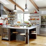 Well, that faucet is an amazing tool. It has the commercial look I wanted, but it’s not three feet tall, like some of them are. And the spray is so powerful, it can clean just about anything. The wine refrigerator is also great — we’re in Napa County, after all, and you’ve got to have plenty of wine storage! But as I look around, I think the real treat in this kitchen is its uniqueness. Those antique lights are not something you see every day. They’ve even got a little knob, where it looks like you once poured in the kerosene. I like great old details like that. All of the handmade elements add a lot of character.