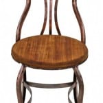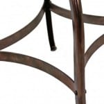 in addition, the curvaceous leg “standards” are secured to circular-shaped cast iron plates that are mounted flush against the underside of the solid wood seat. the backrest, which consists of metal strips folded over and molded into the recognizable “heart shape” profile seen in the “perfection” ice cream parlor chair, remains in great overall condition. the thee strips of steel pinched together in the center and flaring above and below, form the splats (which are individually screwed to the underside of the seat. the cabriole style legs remain structurally sound and stable. the distinctive and much-needed inner brace or “spider” was not yet incorporated into this early design.