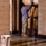 - elevator panels behind the new front desk