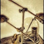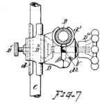 this diminutive early american industrial iron and steel contraption – identified simply as an “adjustable supporter” or knuckle joint, was patented by otis c. white (a dental surgeon from hopkinton, massachusetts) in 1893 for use with electric lamps or lighting, that over time, would gain widespread use in factory and/or various commercial settings throughout the country. the “lamp supporter” or compound swiveling, sliding and clamping joint, was designed in part to connect primary and secondary tubular steel arms of an articulating lamp or light fixture. in addition, the joint provided longitudinal and rotative adjustment of the secondary arm in all directions relative to the primary arm. the brushed cast iron and steel joint (as shown above), consists of a swiveling head having an adjustable grip and clamping jaw for securing the lamp arms (i.e., primary and secondary). the swiveling head is fitted to rotate on the seat located on the main part of the joint, and is axially retained by a pivot or threaded screw that passes through the aforementioned parts. the pivot includes a circular head located in a cavity within the swiveling head. the pivot is non-rotatable in the main part of the joint, and a nut or binder (i.e., “faucet” handle) is fitted on its opposite end outside the clamp jaw, so that by tightening the nut, the multiple parts can be clamped together with sufficient friction for retaining the lamp’s arms at any desired angular position. a yielding washer is typically utilized between the nut and jaw to render the action more efficient than rigidly clamping the parts together. a small, threaded and knurled set-screw or dial is employed for adjusting the pressure of grip on the adjustable arm containing the light source (e.g., incandescent lamp socket with or without reflector). this remarkable device, that has gained such widespread popularity for its usability, functionality and elegantly simple design has no doubt proven the test of time. such a wonderful novelty to marvel at in the palm of your hand…