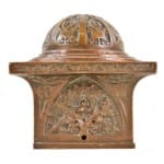 a catalog and/or special booklet from 1919 (author’s collection) is completely devoted to operations surrounding the war effort, with absolutely no mention of their former life as a highly specialized ornamental metal foundry. in fact, the cover of the catalog contains a single graphic, in the form of a lightly embossed metallic gold shell casing and nothing more.