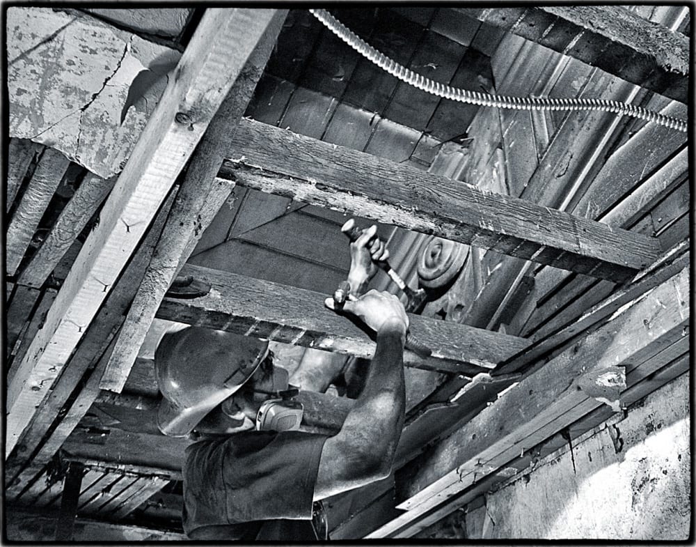 during the course of the salvage, we managed to remove the fireplaces, doors, trimwork, staircase and some of the intact exterior brackets. in a more unusual move, i personally took a great deal of time to carefully extract building materials for further study and research of the home’s construction methodologies and materials used well beofore the great chicago fire. when the russell house was completed, the land west of halsted was sparsely populated with modest wood frame dwellings.