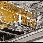 records indicate that the newly discovered “gardenesque” ornament dates to 1907, when the building annex was completed. remarkably, the polychromatic painted finish has been left largely undisturbed. however, the addition of the false ceiling was in no way sensitive to preserving the integrity of the deep relief cast plaster ornamentation that adorned the walls and trusses within the former bar (a glimpse at the damage is clearly seen in the photo-gallery below).