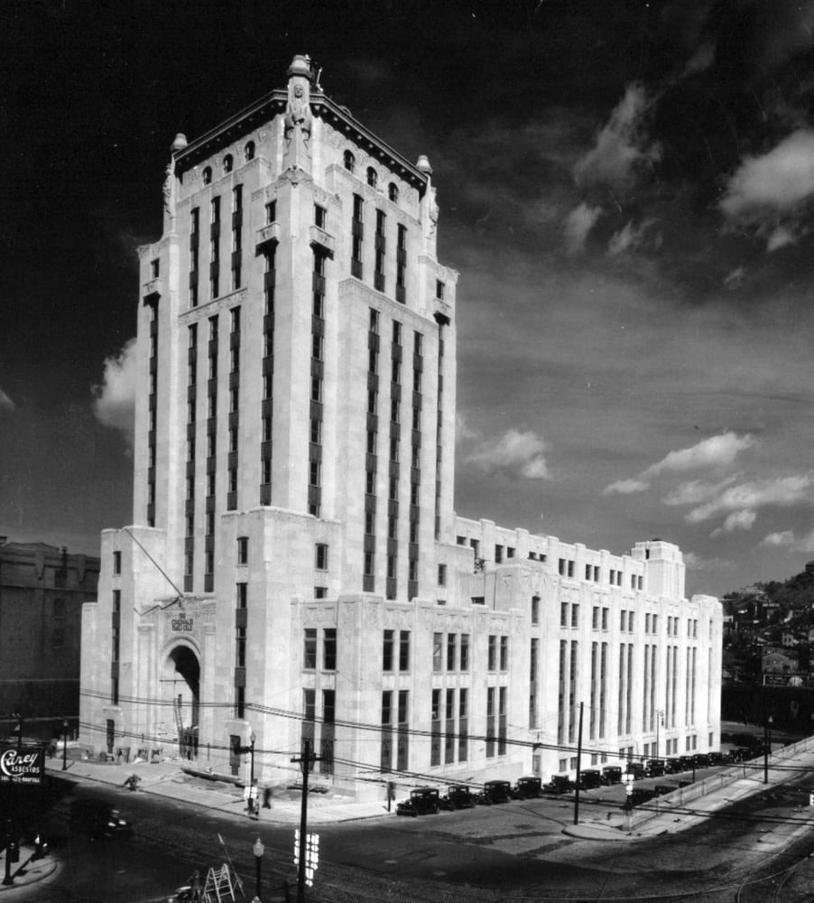 the 16-story 1933 cincinnati times-star stepped back limestone landmark building was designed built in cincinnati by the architectural firm of samuel hannaford & sons (known for designing the city’s music and city hall) in the art deco style.