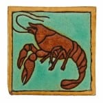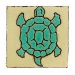 each earthenware tile with polychromatic enameled glaze contain nautical-themed scenes featuring various sea creatures in vibrant colors. the tiles were configured in “sets” of 7 continuous tiles in the order depicted below. the flush mount wall tiles were on each of the walls facing the pool.