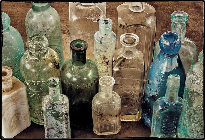 we arrived early in the morning to begin where we left off a few days before. it was hard not to ruminate intensely about the implications of what we would soon discover in the circular-shaped oversized wood-lined privy during that time away. however, with tools in hand, we began to carefully dig after developing a documenting strategy to keep detailed records of all events pertaining to the dig. within minutes, we came across several clear and amber glass medicinal bottles with embossed markings (i.e., lettering) providing us with the manufacturer, the “remedy” and where the concoction was likely made.