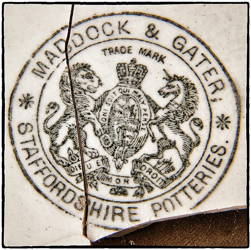 piles of medicinal, mineral water and beer bottles (and fragments), along with a staggering lot of all sorts of “stoneware” in the form of allover crazed plates, teapots, large dishes and several glasses and cups had to be processed. the very elaborate transfer print emblematic markings on the back and/or underside of all of the vitreous stoneware china (nearly all fabricated in england) were just incredible to see and appreciate.