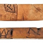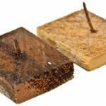 - lath samples: the section in the foreground dates to 1855. the lighter colored pine wood sample with “wire” nail dates to 1897.