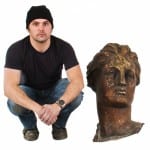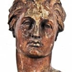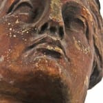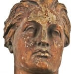 i immensely enjoyed taking the weathervane head to my studio where i could photodocument its current condition, with surface patina and material analysis par for the course. i have included multiple images of the head, shot in my studio shortly after receiving it from the auction house. i need to further examine the interior, which contains riveted seams, along with the surface patina that appears to be a combination of oxidation and surface paint – likely remnants of a gilded finish applied to the exterior.