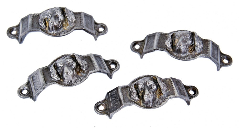 discovering six matching and heavily painted built-in cabinet “doggie” figural drawer pulls on the second floor was a bit unusual. the deep relief cast iron pulls are not found often, so it was a pleasant surprise to run across the drawer pulls during our walk-through inspection. with the removal of several coats of paint and a thorough cleaning, the doggie pulls turned out nicely. the exact fabricator is not known.