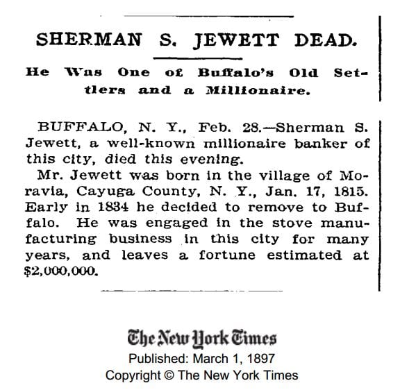sherman s. jewett & co. was one of the oldest and largest stove houses in the country during the 19th century. the firm was known as originally jewett & root, and was founded in 1836 by sherman s. jewett and francis h. root, in buffalo, ny. in 1855, a branch office was opened in chicago, under the management of frank f. spencer, who went on to work for the firm of hibbard, spencer, bartlett & co., then located at 65 south water street. after temporaliy occupying a “fire shanty” after the great chicago fir in 1871, sherman s. jewett erected a magnificent business structure on market street in 1882.
