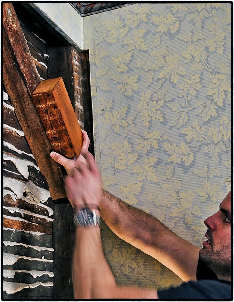 returning to the archival room, i was incredibly impressed with the sheer volume of photographs that documented the house when the museum took possession of it from the city in 1977. the powerful imagery reveals a very dilapidated house very much in need of restoration. in addition, the house needed to be relocated, which turned out to be a remarkably daunting task, that involved lifting the home over the chicago “el” tracks. once the new foundation was built, the house was set into place, stabilized and prepped for the major overhaul to bring it back to its former glory. a few images culled from the stuffed binders containing one after another black and white image chronicling the entire process are found in the image gallery below.