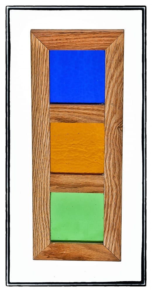 as i continue to rummage through my boxes containing seemingly random objects i have carried with me long before i launched urban remains, i hope to discover additional artifacts where the story or narrative surrounding the object(s) far surpasses the importance of the artifact itself; which in this case, consisted of three small pieces of colored glass installed in a newly-built custom wood frame.