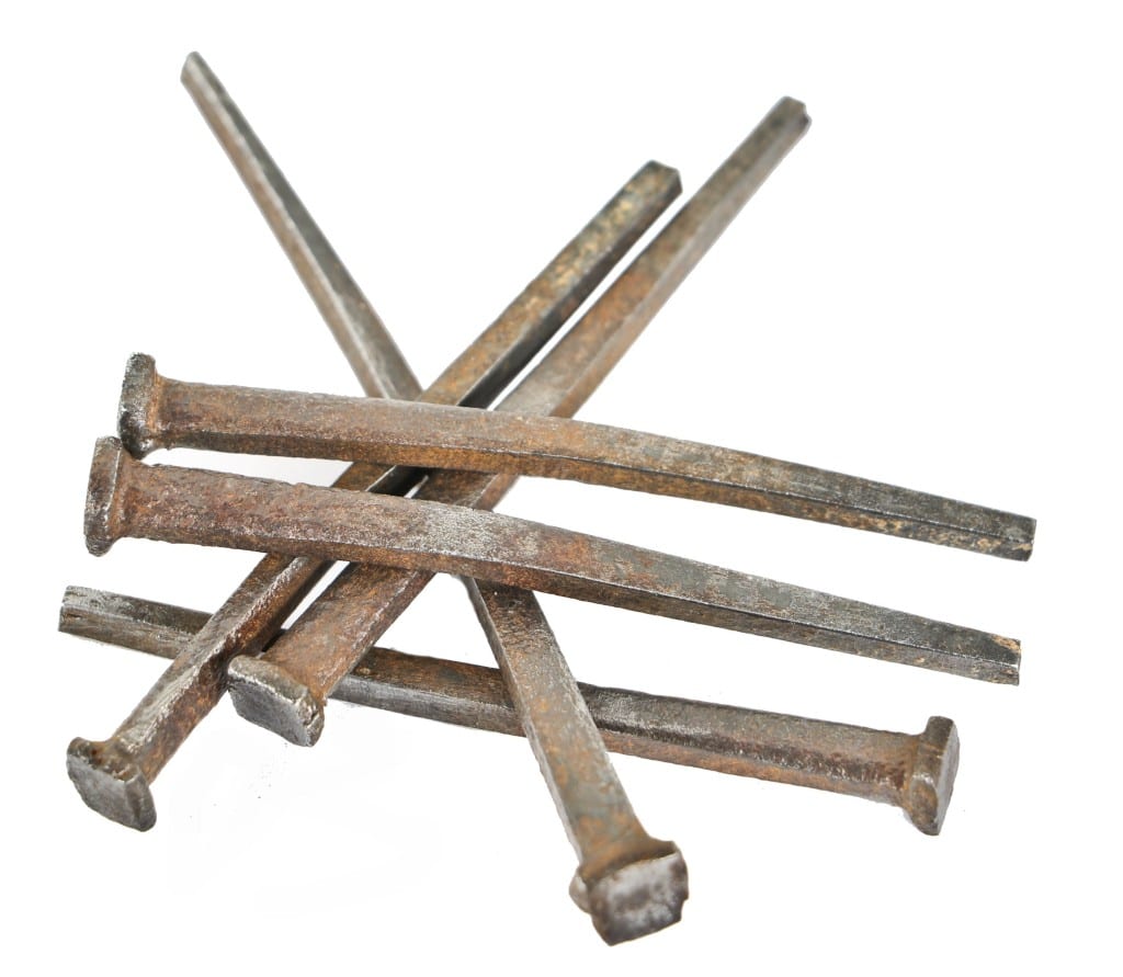 even the heads of the cut nails were very crude and resembled various nails found at the john kent russell house (1855) as opposed to the early, yet more refined wrought iron square nails containing distinctive embossed circles or squares that i come across time and again on structures built shortly after the great chicago fire.