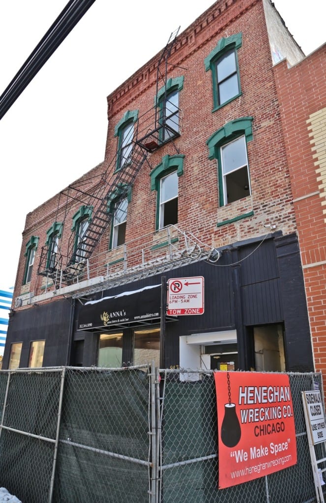 a project manager working for chicago-based heneghan wrecking informed me late last week that two adjoining 19th century multi-story brick commercial buildings located along lake street were undergoing demolition in preparation for future development on the site.
