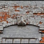 perhaps most importantly, i managed to uncover one of the original (and surprisingly intact) multifaceted diamond motif keystones that rested above a 2nd floor window from the corner building (most likely pre-fire) facing northeast. the centrally located ornamented window hood stone is comprised of cut limestone with much of the detail and traces of the aged surface patina hidden under numerous layers of the same color paint that was applied to every other building on the block. i’ve not identified the manufacturer as of yet.