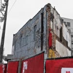 the following images represent a hastily assembled visual overview of the rapid disappearance of the conglomeration of gray-painted brick buildings constructed on a triangular-shaped lot during the latter half of the 19th century. as of this writing, the last of the buildings has been reduced to a pile of debris destined for both the landfill and scrapyard.