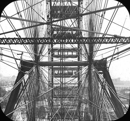 it operated there from october 1895 until 1903, when it was again dismantled, then transported by rail to st. louis for use at the 1904 world’s fair where it was finally destroyed by controlled demolition using dynamite on may 11, 1906 when the fair concluded. the metal was then scrapped and melted down at an unknown factory.