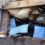 - dated event card used as insulation within the west wall