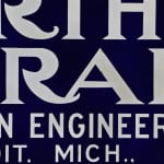 before being taken down and brought back to the shop, the porcelain enameled depression era cobalt blue “northern crane” sign was still tightly affixed to the gargantuan riveted joint steel hoist that moved slowly along opposed rails. the condition is remarkable, considering age.
