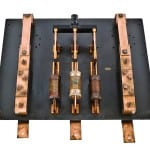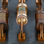 the incredibly heavy slate-backed switchboard with centrally located three pole solid copper knife switch and three 500 amp brass-capped fuses bigger than my fist, was salvaged from the same foundry building housing the crane. after a light cleaning, the oversized electrical contraption looks stunning in the shop.