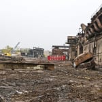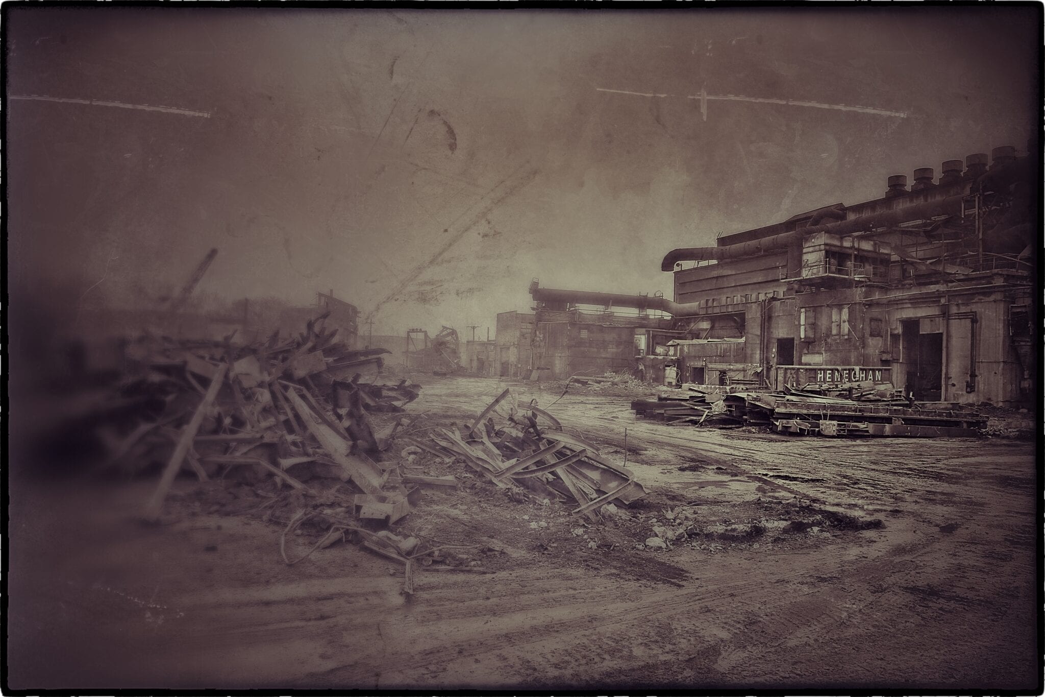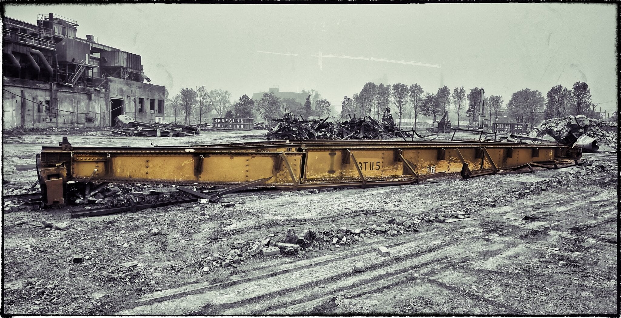 i have a feeling oddball movie director david lynch would find inspiration at this overwhelmingly desolate and gloomy demolition job site, that once was home to one of the largest foundries in the chicago area. the thick overcast blanket prevented the sun from making an appearance throughout the day. the light was a bit tricky, with the lack of a warm glow and/or added dimension and depth produced by shadows.