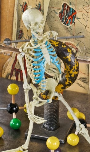 19 May wood molecules, strands of dna, a diminutive skeleton, illustrated posters and other medical oddities