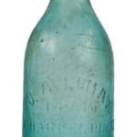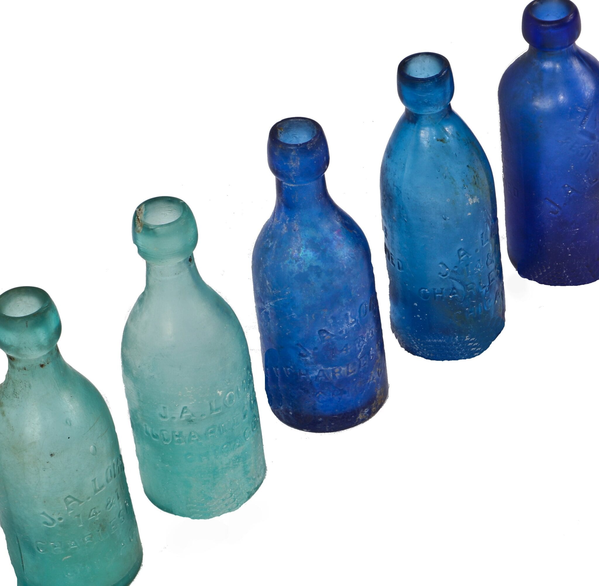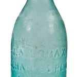 soda and mineral water bottles from george’s brother, john a. lomax were apart of last week’s acquisition, which included five bottles dating from the civil war up until the early 1880’s when lomax’s bottling career drew to a close. all of the bottles contain smooth bases with embossed lettering (i.e., initials of the bottler), applied tops and necks of various lengths. the cobalt blue and aqua-colored bottles were all dug from privy pits in the city of chicago.