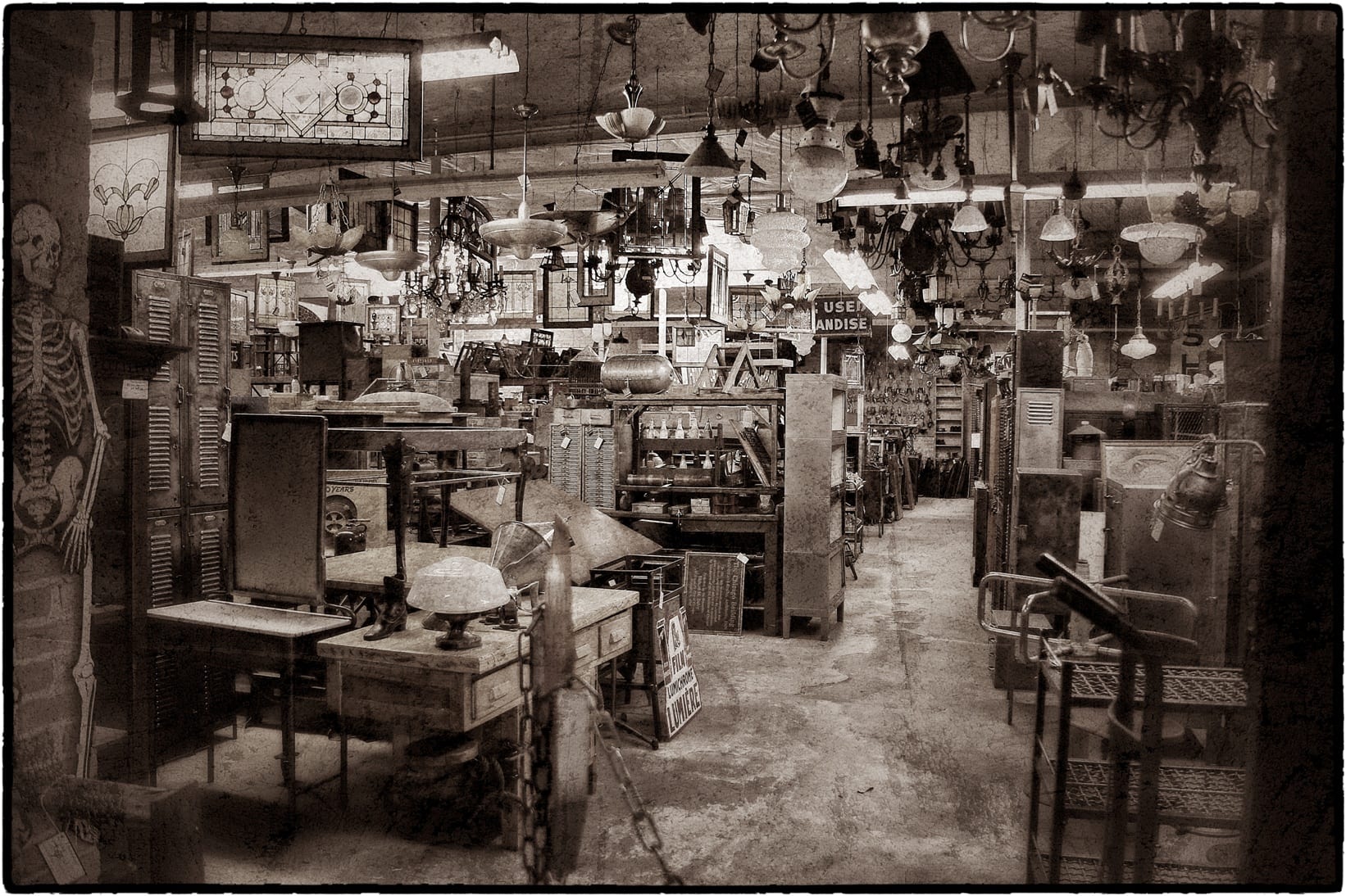 medical and industrial furniture, 19th century bottles and historic building terra cotta