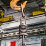 the gargantuan metal bridges or “hoists” would crawl along parallel runways or tracks spanning the width of the industrial complex. at ground level i equally admired the large scale hook blocks, equipped with sheaves designed for use with thick steel wire rope, that would raise and lower pots of molten metal via a hoist anchored to the bridge.