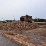 as expected, virtually every building clustered together on both sides of cortland avenue were wiped away, with only sporadic the iconic arches, piles of brick, and a partially demolished out-building left standing.