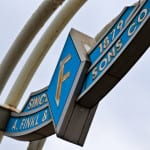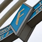 the single piece to make its way into the bld. 51 museum is a single-sided flush mount polished aluminum and enameled steel diamond-shaped building plaque containing the embossed letter “f” for finkl. the oversized plaque was removed from the administration building during the beginning phase of our salvage there.