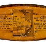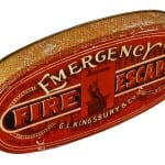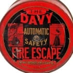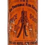 the gallery below represents three of my favorite “new old stock” portable fire escape devices (from my personal collection) that date to the late 19th century and early 20th century. each fire escape contains a seemingly dangerous and ineffective escape “system” involving ropes, straps, and various hooks with instructions for use. what i’m drawn to most however, are the visually striking lithographed images found on both the exteriors and interiors of each canister housing the equipment. the condition is quite remarkable, considering age. i imagine these devices were considered standard amenities used in 19th century hotels across the county.