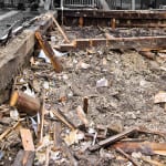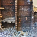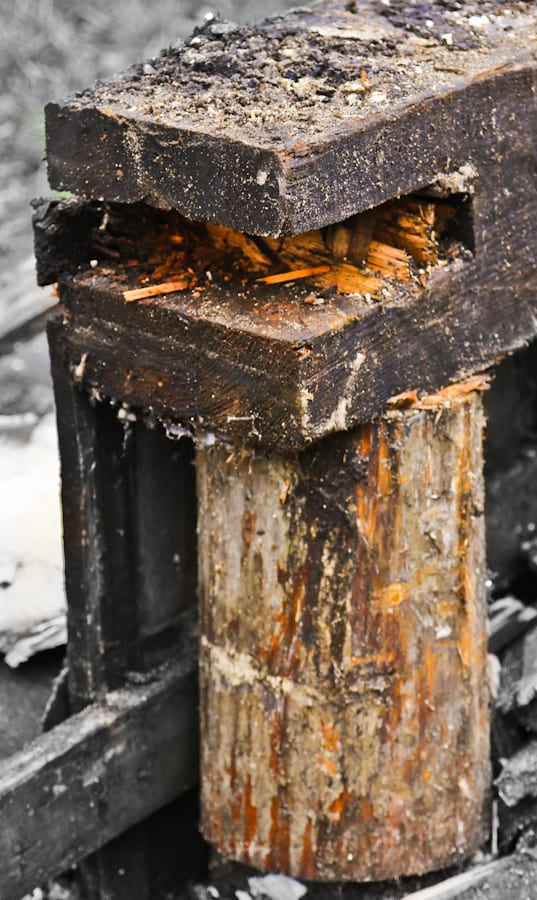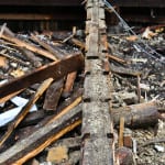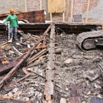 a few weeks later i received word that the house was going to be demolished the next day. when i arrived onsite, nothing initially “spoke” to me. there had been so many alterations – far more than i anticipated. the entire rafter system had been replaced from a previous fire, and traces of additional fire damage were discovered behind walls exposed by the claws of the excavator’s backhoe. i was mainly interested in the front-most section of the house and the sill plate configuration. since the debris from the demolition covered over these sills and the front wasn’t demolished, i would return the next day when the job reached completion.