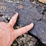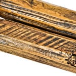 early the following morning i received a call from the wrecker informing me that the sill plates were ready to be photographed. the day prior, i’d asked if he would be kind enough to contact me as soon as they were exposed “in situ” so i could carefully examine their surface characteristics, configuration and so on. when i arrived on site, i could not believe my eyes. my wrecker friend managed to clear all the debris away from and around the sill plates and heavily notched girt. it was a remarkable sight to behold. the heavy timbers rested on cedar posts that had been cut down. more likely than not, these posts once served as logs used to roll the house (with teams of oxen) from site to site.