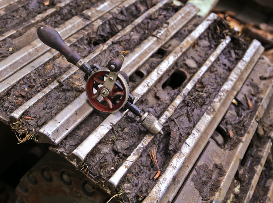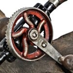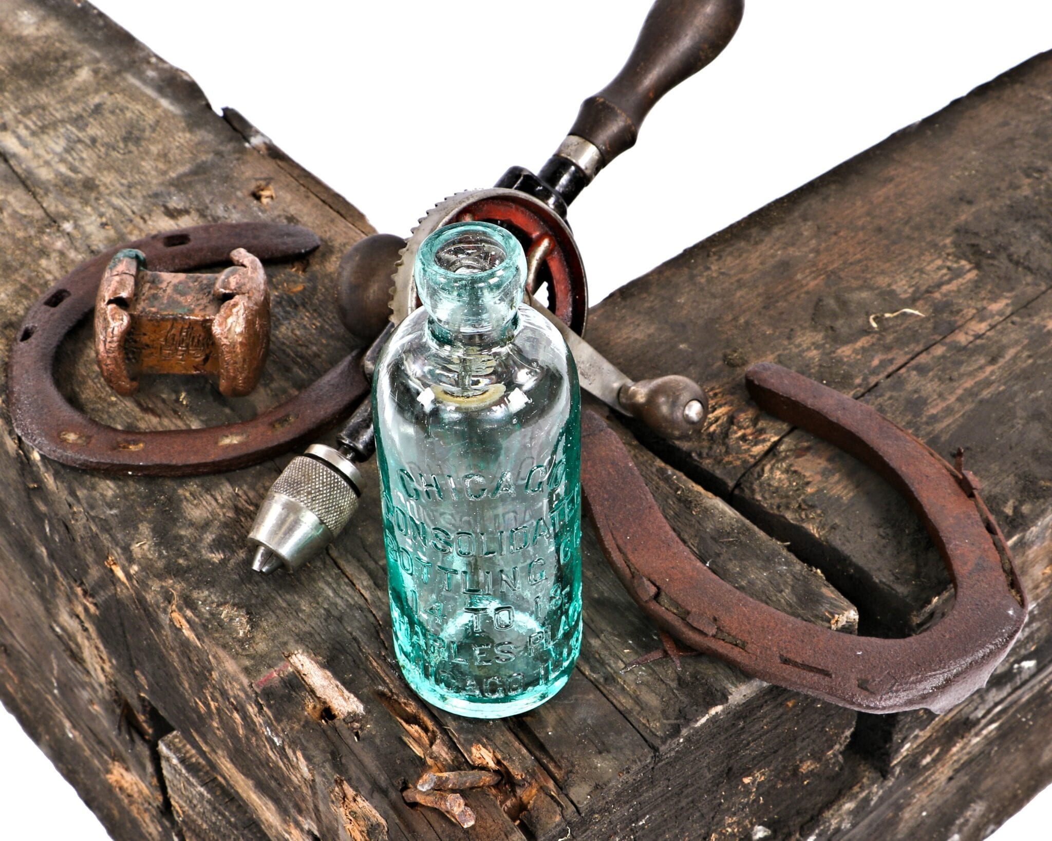 the remarkably intact hand drill was left behind by one of the carpenters involved in constructing this house. it likely fell from the second floor where it landed on the sill plate. if the studs on the first floor had been treated with last and plaster, then the “cavity” was no longer accessible and the tool was irretrievable. this is just a theory, but the only one that comes to mind as to why the period appropriate hand drill was found resting atop a sill plate. more and more hand tools, along with several bottles left in and around cavities near sill plates and foundations were no doubt left by the builders. a future post will touch upon this.