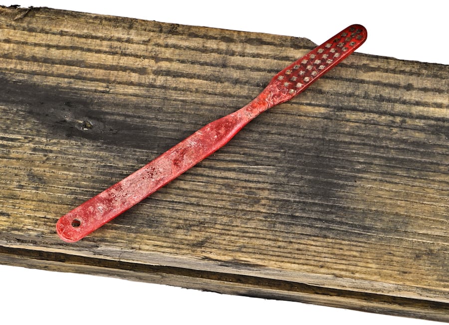 the privy pit did not contain staves or hoops. rather, this one was circular and outlined in common brick. perhaps the most important feature was the floor, which consisted of very thick yellow pine wood boards interlocked with tongue and groove joints. of the 15 or so privy floors i have found (all with circular wooden floors) over the last year, this was only the second one found bearing these characteristics of thickness and joinery. the other, found less than a mile away from the john kent russell house (1855), contained an even thicker floor with tongue and groove joints, staves and riveted wrought iron hoops.