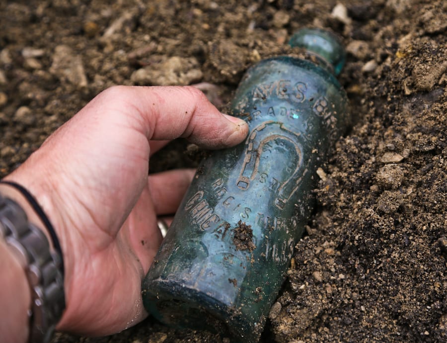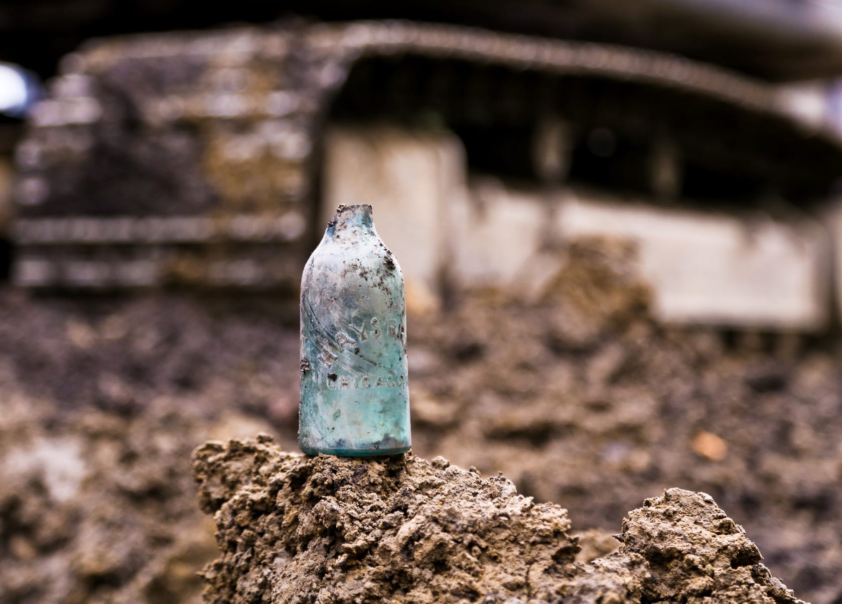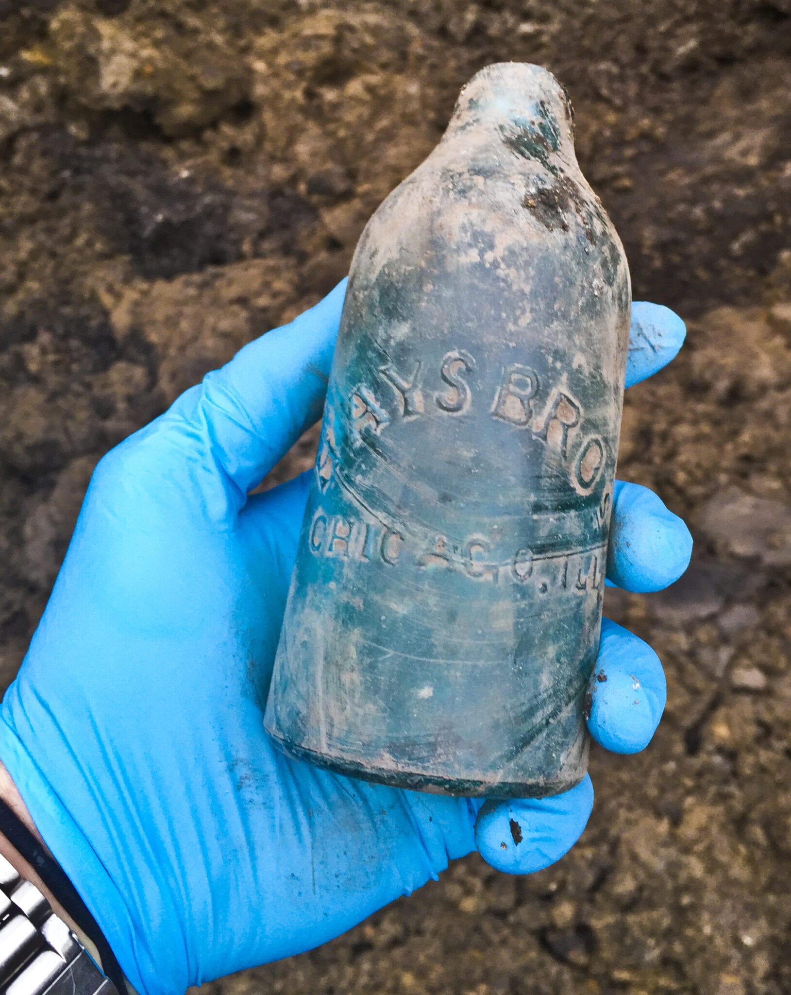 several chicago fire era bottles, fragments and an incredibly well-built circular wood floor privy discovered this week