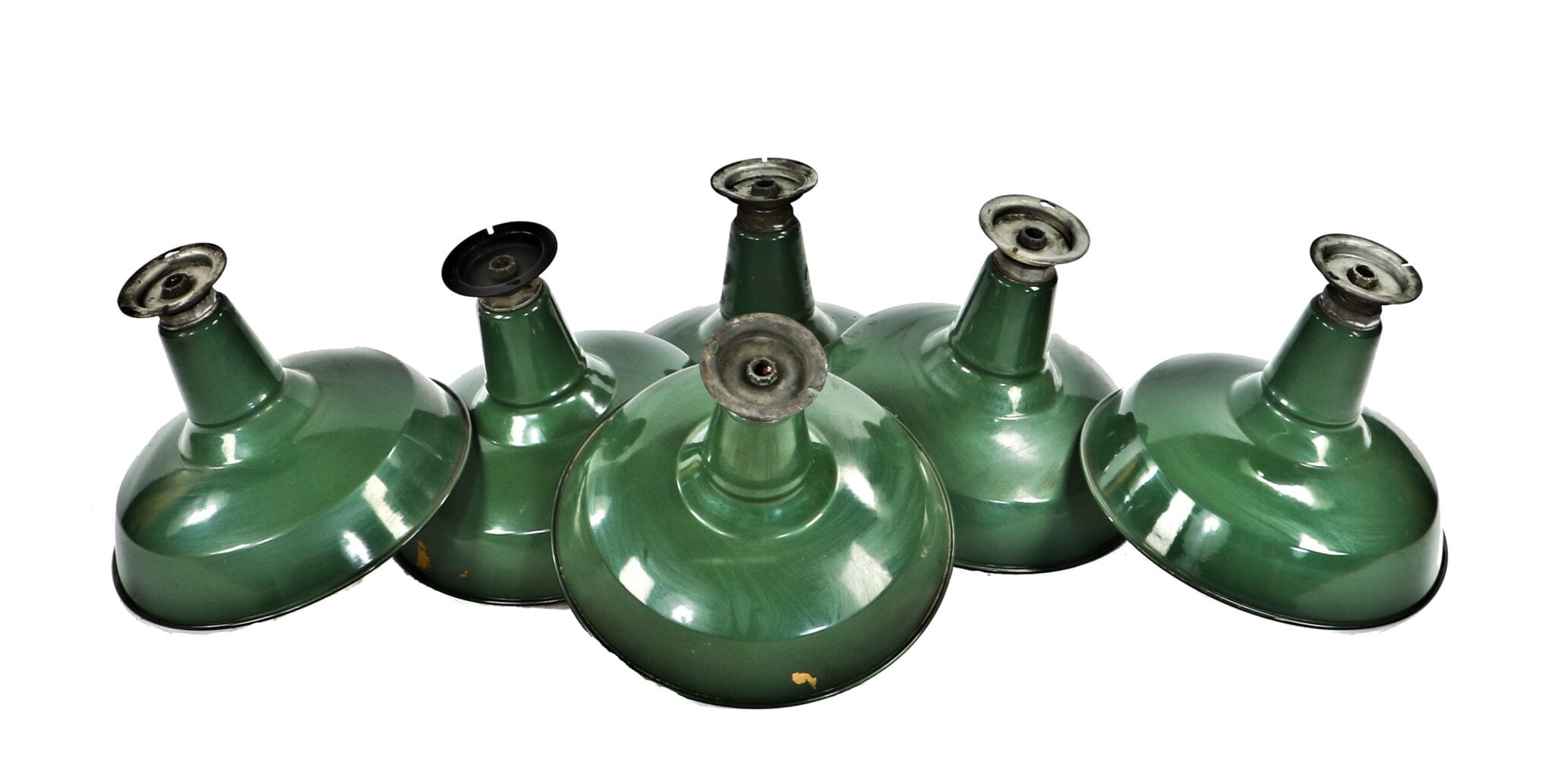 an example of some of the green porcelain enameled benjamin light fixtures salvaged from the complex.