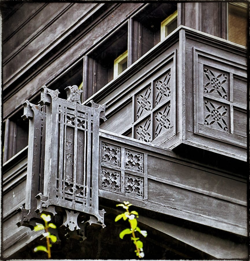 while on a brief weekend vacation to madison some time ago, i was determined to visit the harold c. bradley residence (1909), designed by notable architect louis h. sullivan and his chief draftsman, george grant elmslie. this would be elmslie’s last commission with sullivan – shortly after, he would join william gray purcell. after we arrived at the house, i could not help but approach closer to fully take in the elaborate fret-sawn wood brackets, stemming from the cantilevered sleeping porches.