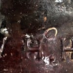detail of wood privy vault floor segment with sass & hafner quart bottle fragment (also discovered at the site in the vicinity of the privy floor)