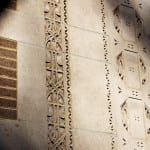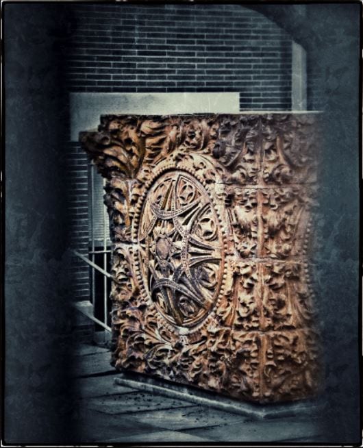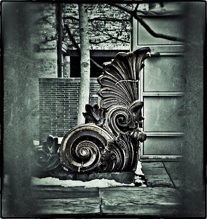 the enclosed courtyard contains the architectural fragment “sculpture garden,” consisting of several 19th and 20th century architectural artifacts salvaged from mostly demolished chicago buildings designed by louis sullivan, dankmar adler, h.h. richardson, frank lloyd wright, john edelmann, raymond hood and george elmslie, the fragments are gifts from various chicagoans, architects, and architecture enthusiasts and occupy the courtyard garden and certain walls of the library.