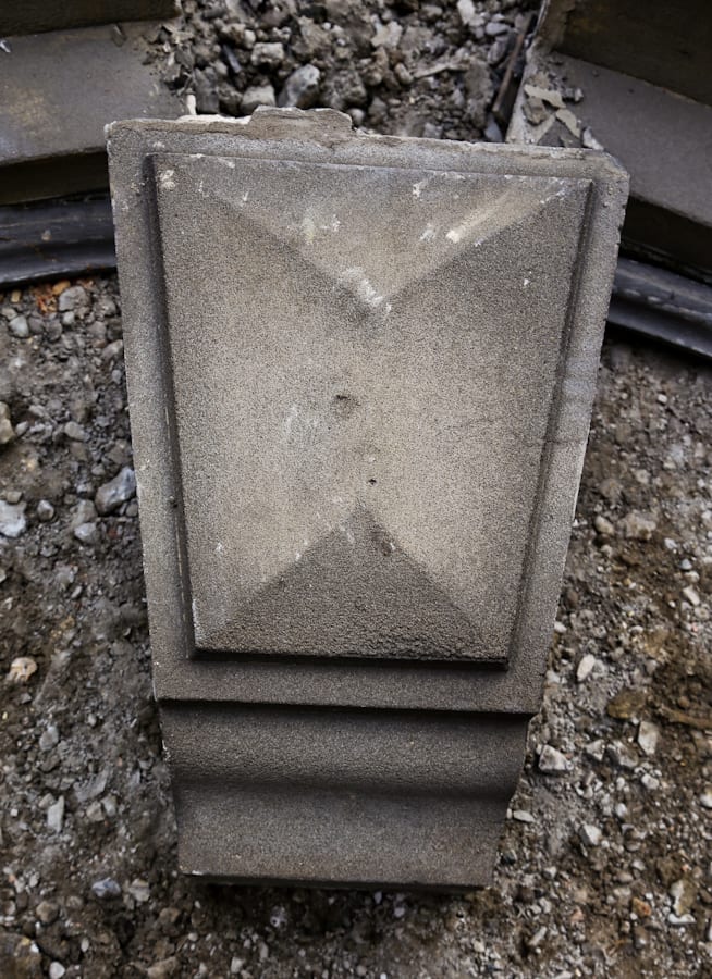 bldg. 51 museum acquires an intact post fire “artificial stone” window keystone from the osborne and adams building