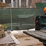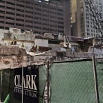 satisfied with the documentation of the pieces removed thus far, i went back to mike and talked a bit about the challenges they faced with this rather tricky demolition, surrounded by “l” tracks, heavy pedestrian traffic and/or automotive congestion along lake street and having the neighboring bar cease operations until the shared wall was taken down. as our conversation drew to a close, we hammered out the logistics of transporting one of the gargantuan keystones from the site to our waiting company truck. i was absolutely ecstatic and utterly delighted at the ease of the process, and obtaining a keystone for the museum. i was doubly grateful to know that two complete window surrounds would be reintegrated into the structure replacing this one. it will serve as a subtle, but visually striking reminder of the previous building constructed on this site, and of what existed immediately following the great chicago fire.