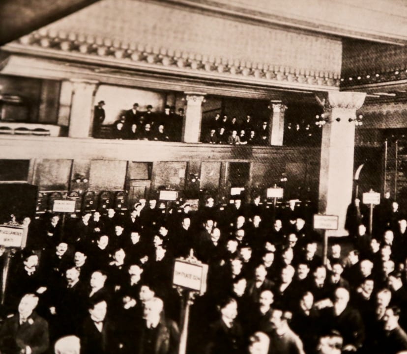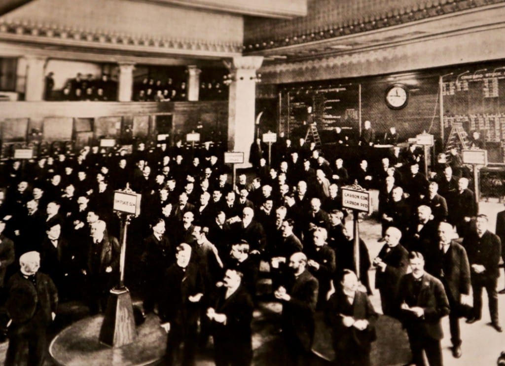 rare glimpse at the trading room interior take during the late 19th or early 20th century.