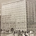 interior photograph of the chicago stock exchange with the electrolier sconces shown “in situ.”