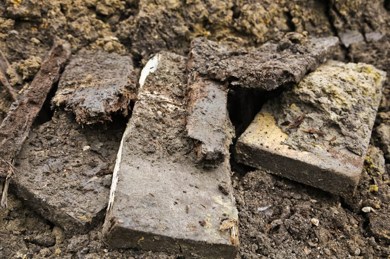 this recent discovery is no doubt bitter-sweet in that only a very small percentage of the privy’s contents were rescued. in fact, i wasn’t even present for the most damaging moment, when the owner of the company took control of the machine several minutes before the operator i work with would show up. in that short period of time, another worker on-site witnessed what i have been describing for over a year now: an actual privy pit with a thick wood floor and side walls, held together by tar and a wrought iron hoop – very similar to a barrel with the top half removed, except nearly 6 feet in diameter. once the floor was exposed, he knew that the earth above was likely filled with 19th century trash. this was quickly confirmed when the owner/operator scooped it up and more glass than dirt fell from the sides of the bucket. the worker quickly set aside some intact bottles and pieces of the floor from the completely decimated privy pit. the majority of its contents dropped into the waiting dump truck.
