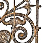 in the bldg. 51 collection is a stunning ornamental cast iron elevator grille fabricated by the winslow brothers for the interior of the manhattan building. the single-sided copper-plated panel features very unique organic motifs throughout. the detailed vertical panel is a historically important remnant of the oldest surviving commercial building of skeletal construction in chicago, designed by william lebaron jenney.