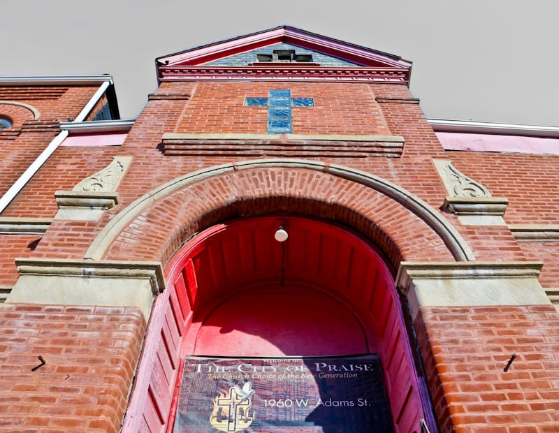 this week sees the impending demolition of the late 1880’s holy bethel or “adams street” church situated at the corner of adams and damen, near the united center on chicago’s west side. with the excavator set to arrive on thursday, i have all day wednesday to remove anything and everything within the church’s interior. since there were countless remuddlings and outright destructive modernization (e.g., removal of nearly all of the original stained glass windows only to be replaced with cement and glass blocks) over the last fifty years, the exterior is greatly disfigured, with only a few remaining (original) cut limestone ornament worthy of salvaging.