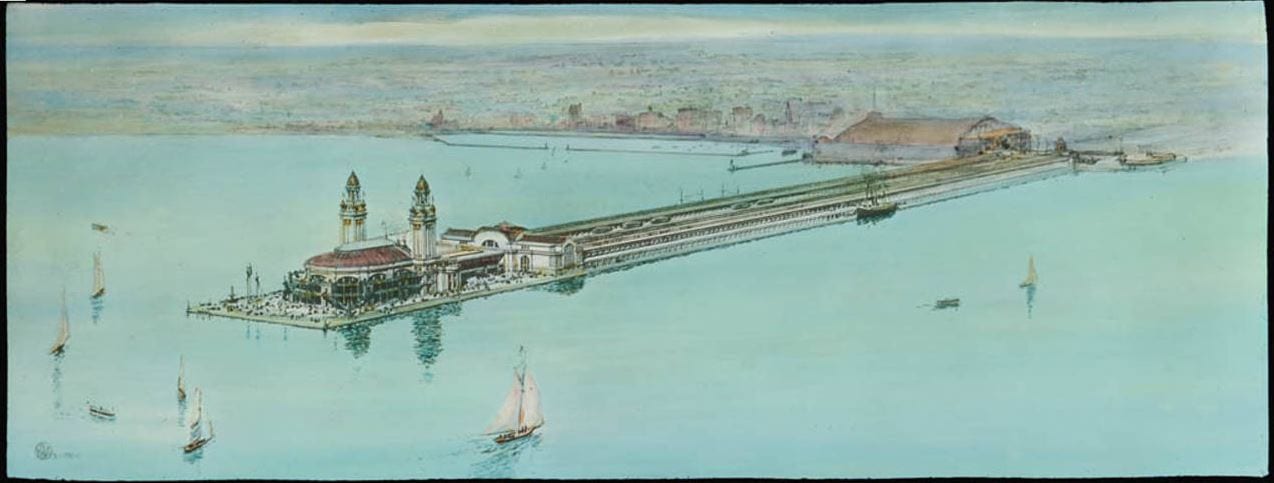frost worked on his own between 1889 and 1898 before starting a partnership with alfred h. granger. granger had studied in paris and brought a beaux-arts sensibility that harmonized well with other architectural visions in chicago around the turn of the century. together, frost and granger designed monumental buildings, including train stations in omaha, st. paul, and montreal, besides two in chicago. frost would go on to design navy pier, which incorporated elements of daniel burnham’s chicago plan, and met the interests of the harbor and subway commission. the pier, opened in 1916, featured neoclassical style buildings at the head and east end of the pier, and designs were rich with terra cotta ornamentation. the public life insurance building was completed just 7 years before frost would retire, and a decade before his death.